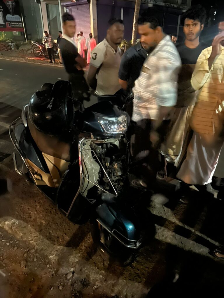 ചെമ്രക്കാട്ടൂർ: അരീക്കോട് ചമ്രക്കാട്ടൂരിൽ ബൈക്ക് യാത്രികൻ ഓട്ടോക്ക് പിന്നിലിടിച്ചു എന്നാൽ ആക്റ്റീവ സ്കൂട്ടറിൽ യാത്ര ചെയ്തിരുന്ന യാത്രികൻ ചെറിയ പരിക്കുകളോടെ കടുങ്ങല്ലൂരിലെ സ്വകാര്യ ആശുപത്രിയിൽ ആശുപത്രിയിൽ പ്രവേശിപ്പിച്ചു 7:10ന് ആയിരുന്നു അപകടം കൂടുതൽ വിവരങ്ങൾ അറിവായിട്ടില്ല.