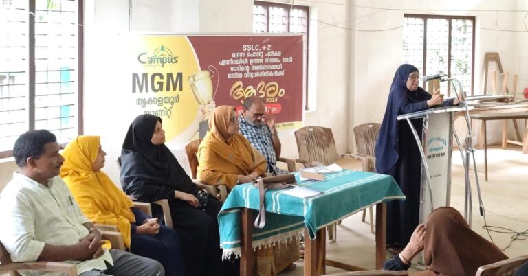 കീഴുപറമ്പ്: തൃക്കളയൂർ യൂണിറ്റ് എംജിഎം സംഘടിപ്പിച്ച ‘ക്യാമ്പസ് കോമ്പസ്’ മോട്ടിവേഷൻ ക്ലാസും, പ്രതിഭകളെ ആദരിക്കലും, എംജിഎം മലപ്പുറം ഈസ്റ്റ് ജില്ല പ്രസിഡണ്ട് പ്രൊഫ. എൻ.വി സുആദ ടീച്ചർ ഉദ്ഘാടനം ചെയ്തു. കീഴുപറമ്പ് ഗ്രാമപഞ്ചായത്ത് വികസന സ്റ്റാൻഡിങ് കമ്മിറ്റി ചെയർപേഴ്സൺ സഹ് ല മുനീർ മോട്ടിവേഷൻ ക്ലാസ്സിന് നേതൃത്വം നൽകി. മൈമൂന ടീച്ചർ, ആമിനക്കുട്ടി, അബ്ദുൽ അസീസ് സുല്ലമി, നജീം റംസാൻ, എൻ. അബ്ദുൽ കരീം മാസ്റ്റർ പ്രസംഗിച്ചു. സെക്രട്ടറി സാബിറ എം സ്വാഗതവും സ്റ്റുഡൻസ് വിങ്ങ് സെക്രട്ടറി മുഫ്ലിഹ. പി നന്ദിയും പറഞ്ഞു.